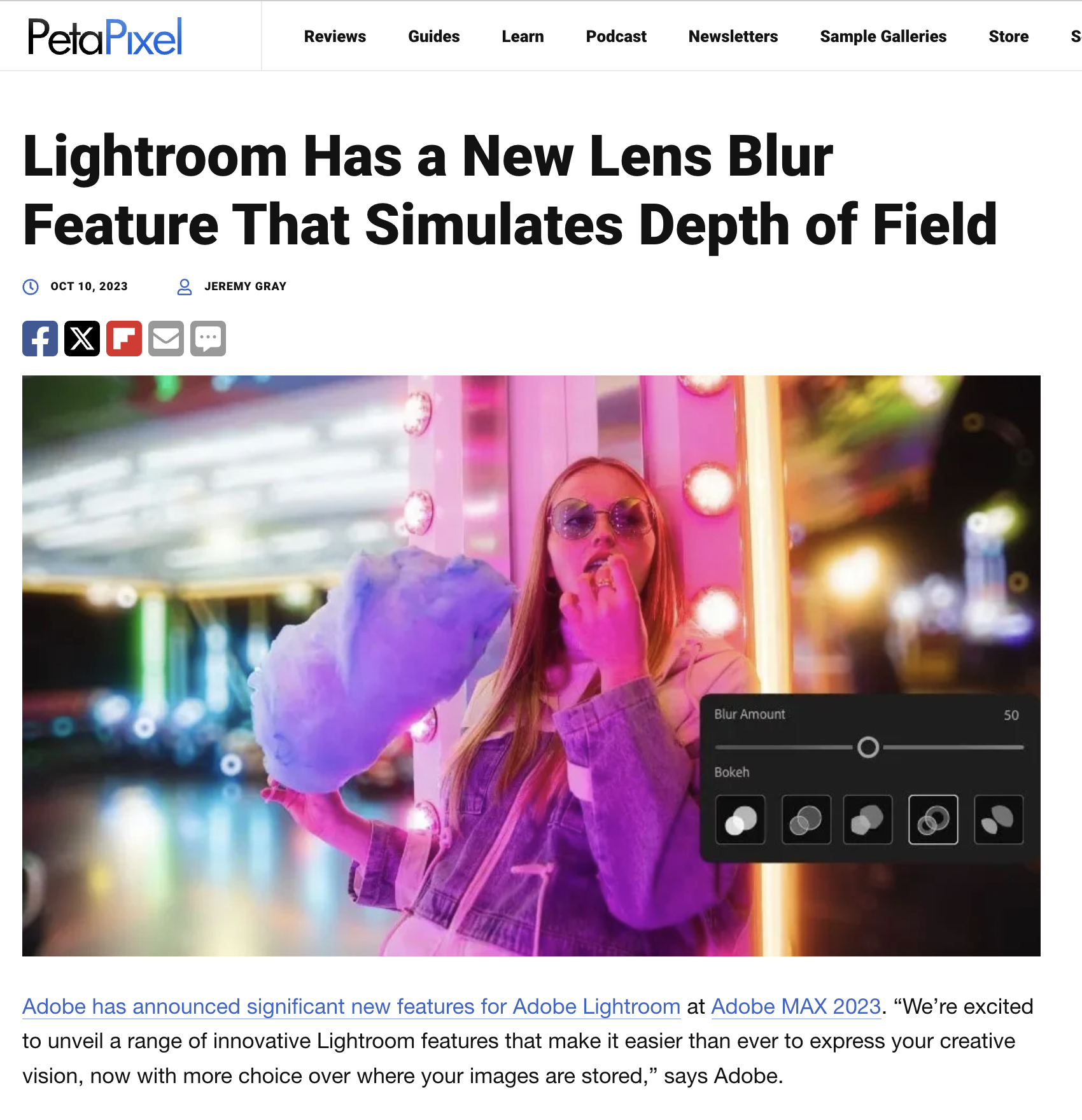 I led the design of Lens Blur, Lightroom’s first generative AI feature, scaling it across ACR, Classic, Desktop, Web, and Mobile while tailoring the experience to the unique opportunities of each platform. It was released at Adobe Max’s Keynote presentation.